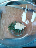 Take 6-7 peeled garlic cloves and mash/crush with a garlic press. If you don’t have a garlic press then crush and finely chop instead. Fry in oil and butter until they start to brown. You want a good amount of oil and butter, enough to coat both pieces of fish when the marinade is done. Chop 1 sprig of rosemary and add to garlic. Set aside and allow to cool Add lemon juice and mix.