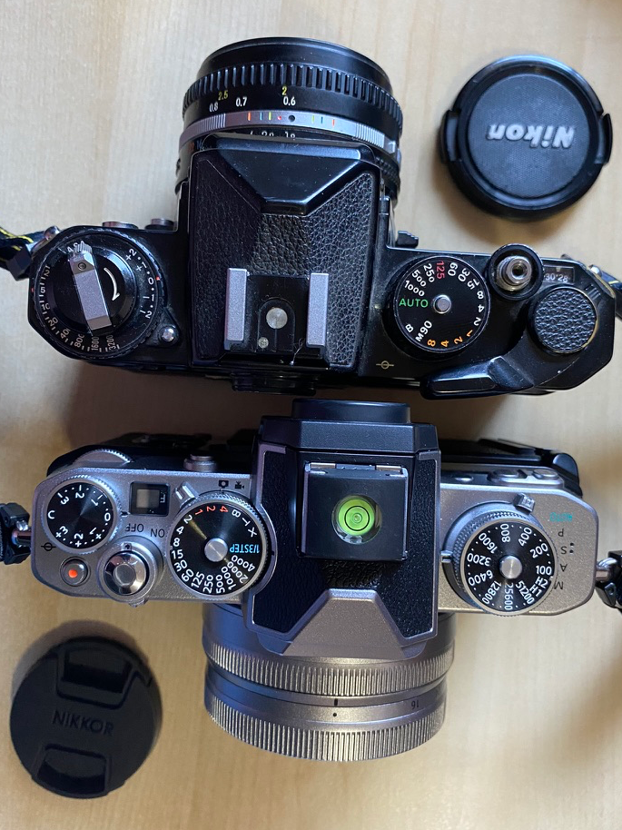 I still have the old Nikon FE from my youth, and it now has a digital companion, the Nikon Zfc.