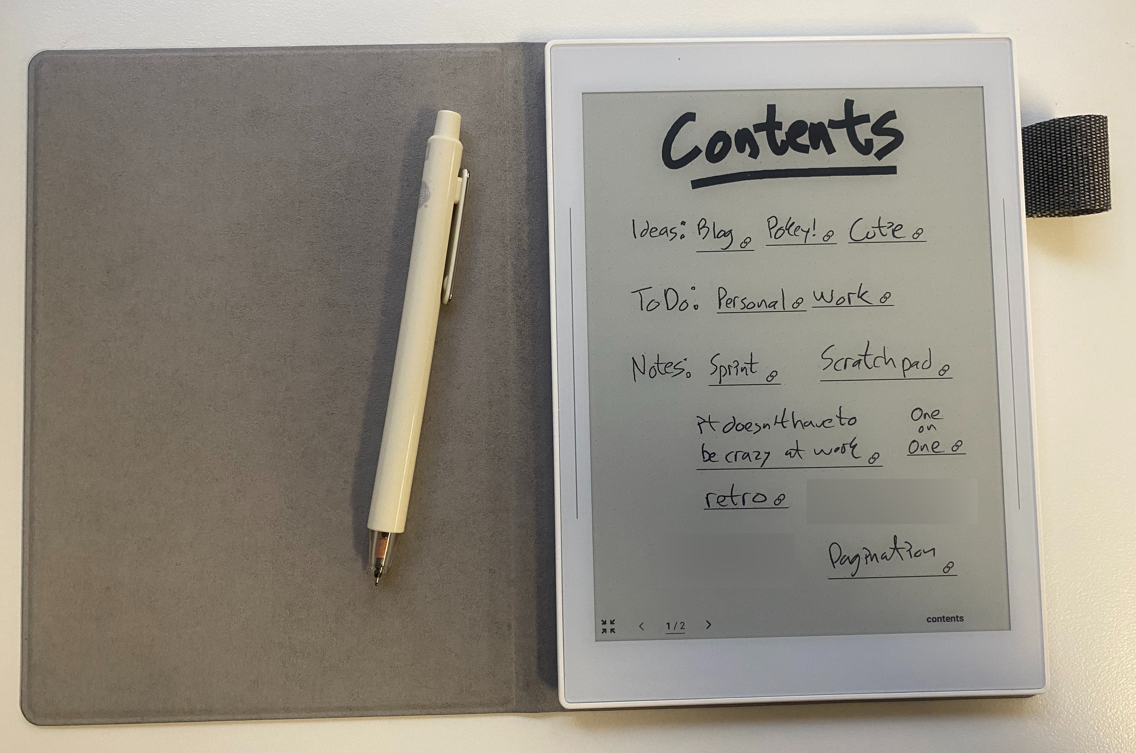 The act of writing is much closer to the pen and paper feel than one would get with an iPad. While it doesn’t feel quite the same as pen and paper it’s good enough that it feels natural after a while.